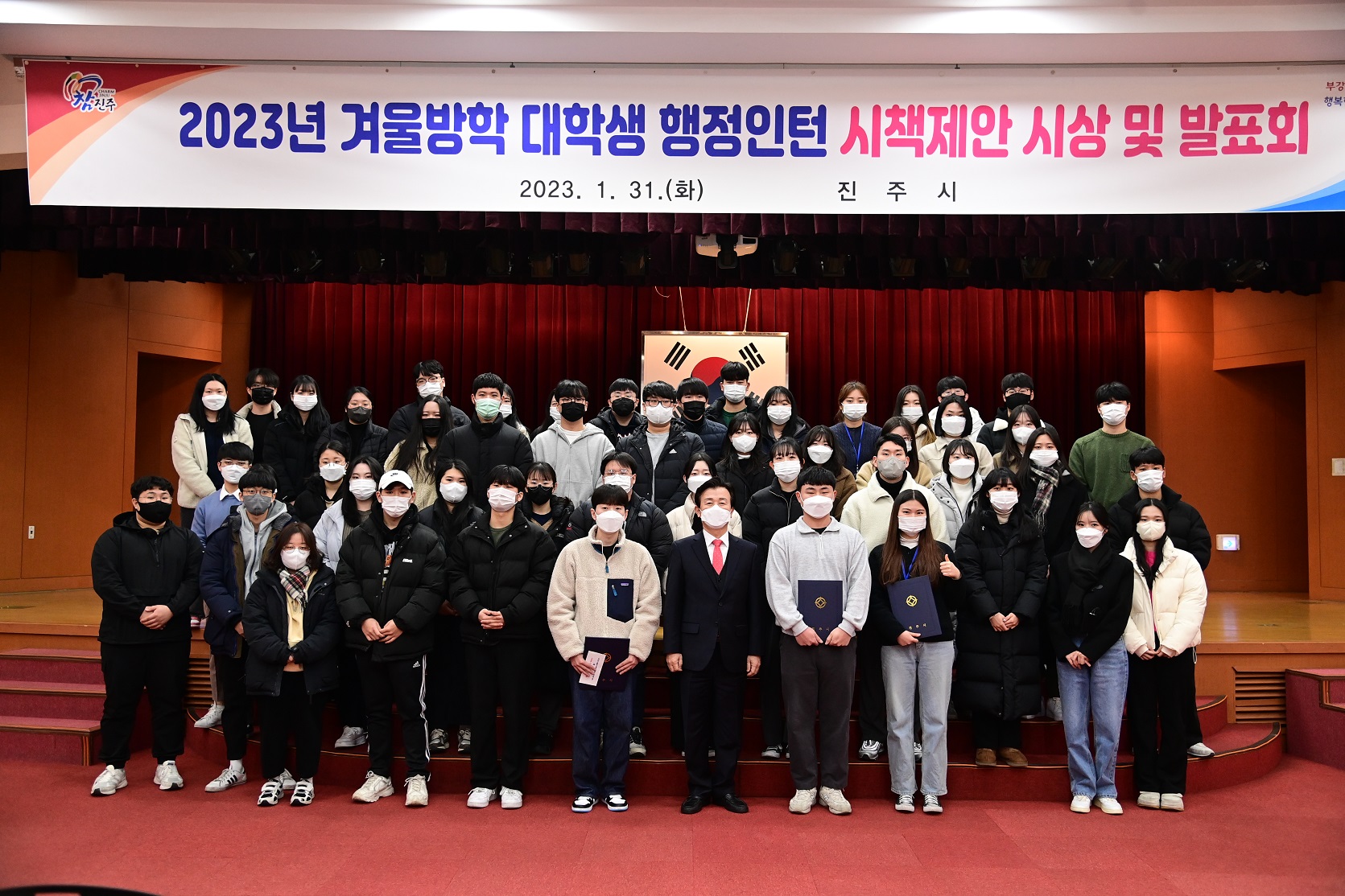 2023년 겨울방학 기간 행정인턴에 참여한 학생 120명을 대상으로 우수시책 제안자 발표회와 시상식을 개최하였습니다.