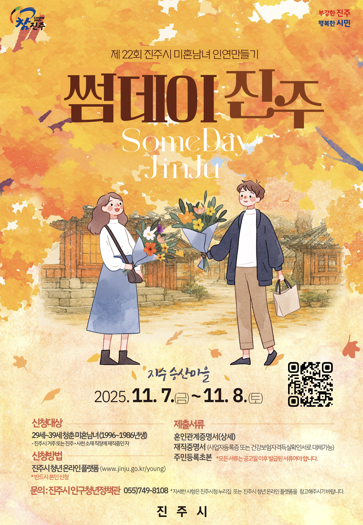 제22회 진주시 미혼남녀 인연만들기 행사 「썸데이 진주」참가자를 모집하오니 많은 관심 부탁드립니다.