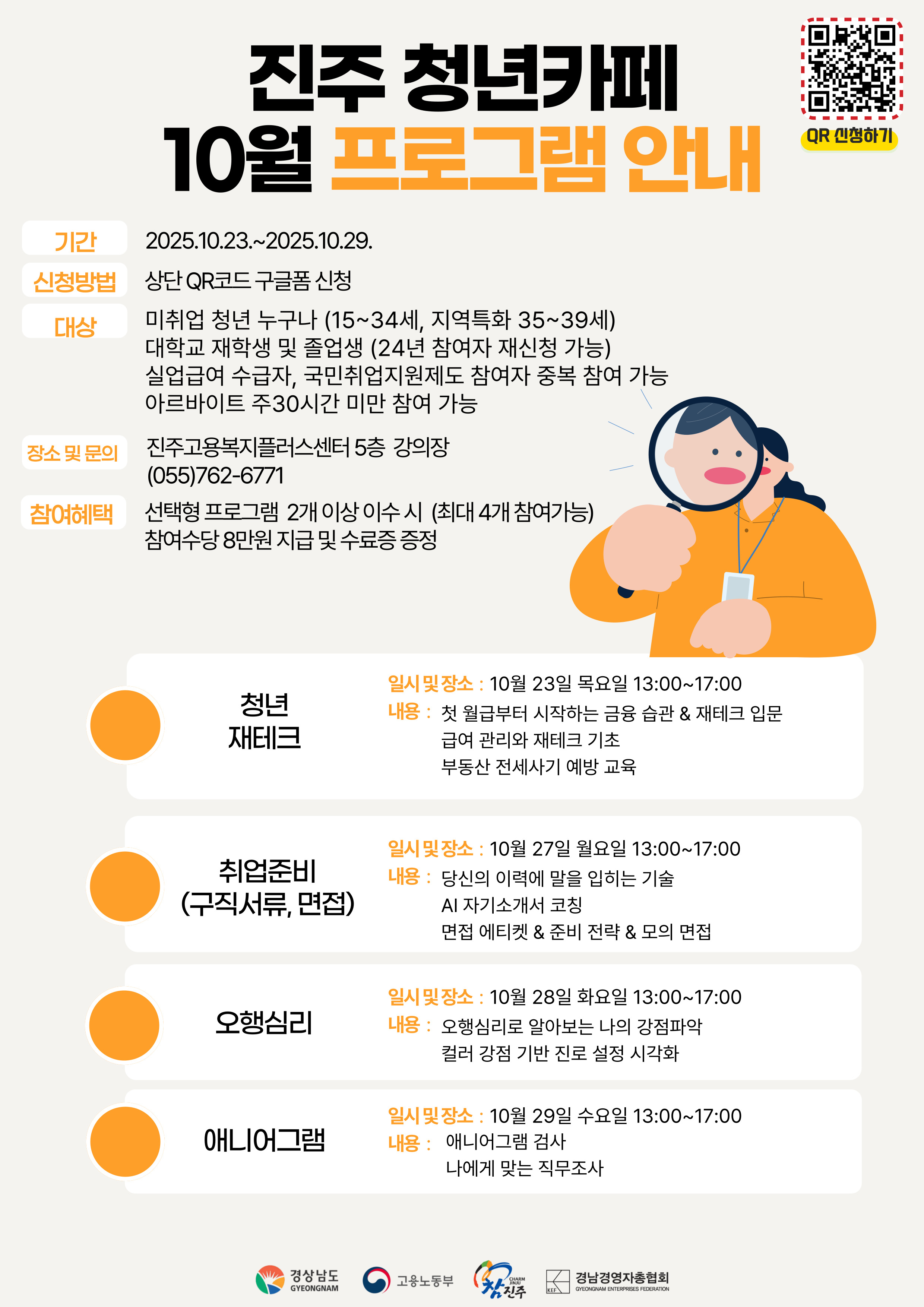 <<2025년 청년성장프로젝트 진주 청년카페 10월 선착순 참여자 모집>>