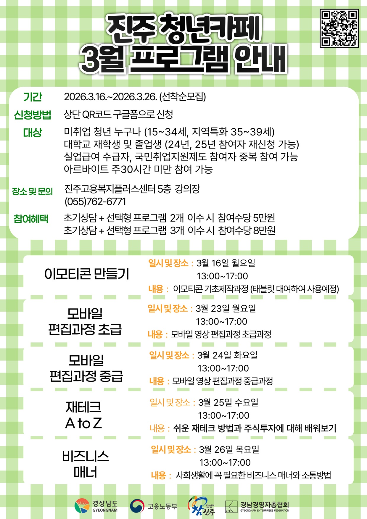 * 문의사항 : 경남경영자총협회 청년카페 진주 055-762-6771
