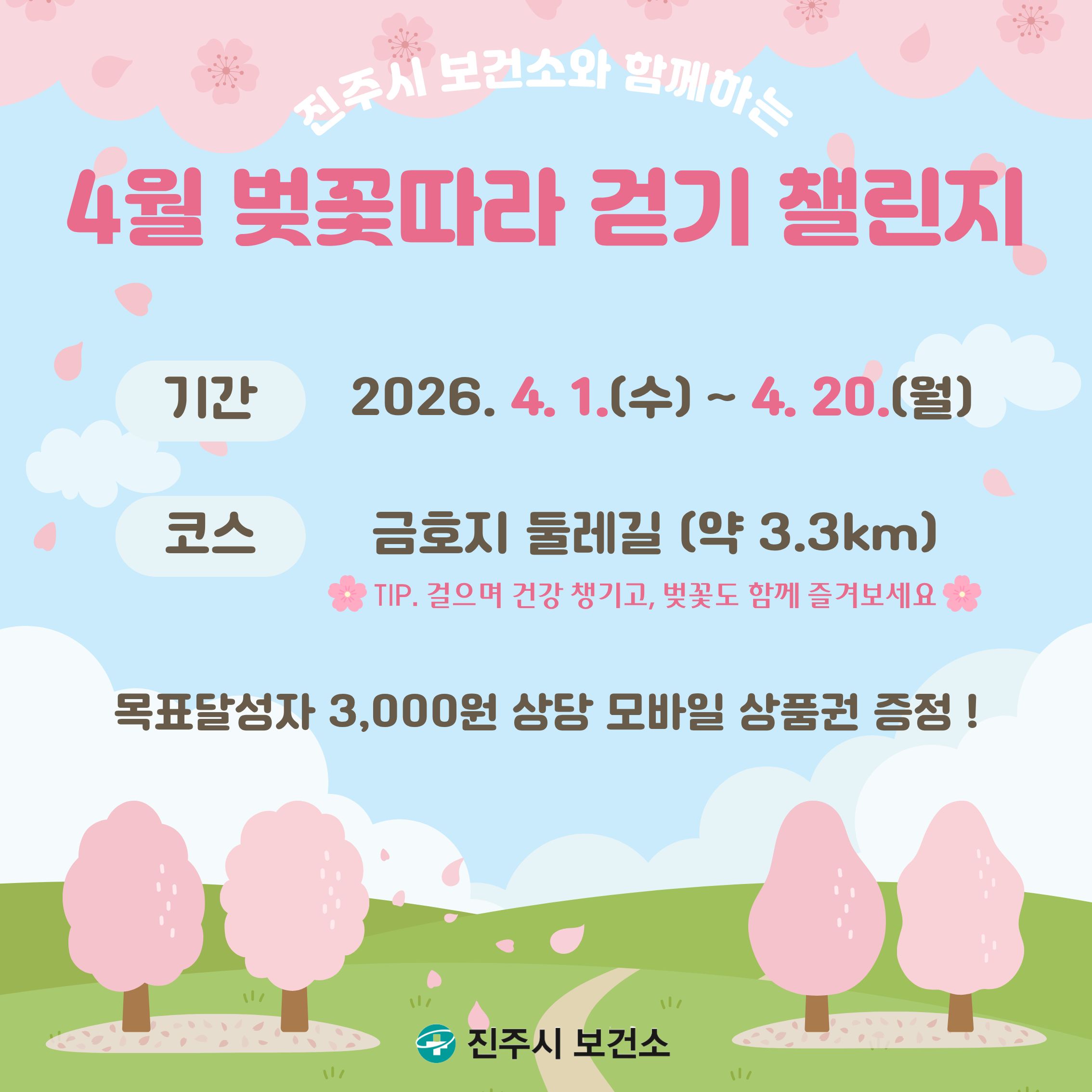 - 걷기 코스 80% 이상 달성자 모바일 상품권 제공(3,000원권 기프티콘)