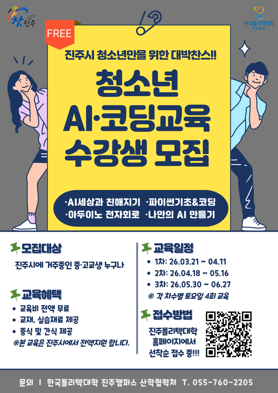 4차 산업혁명 스마트교육과 연계하여 진주 청소년들의 코딩 및 인공지능(AI)역량을 개발하는 사업입니다
